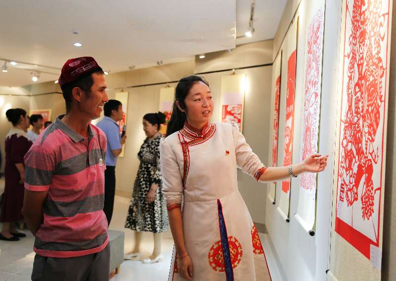 精河县党委组织部干部乌伦其米克与亲戚参观书画展