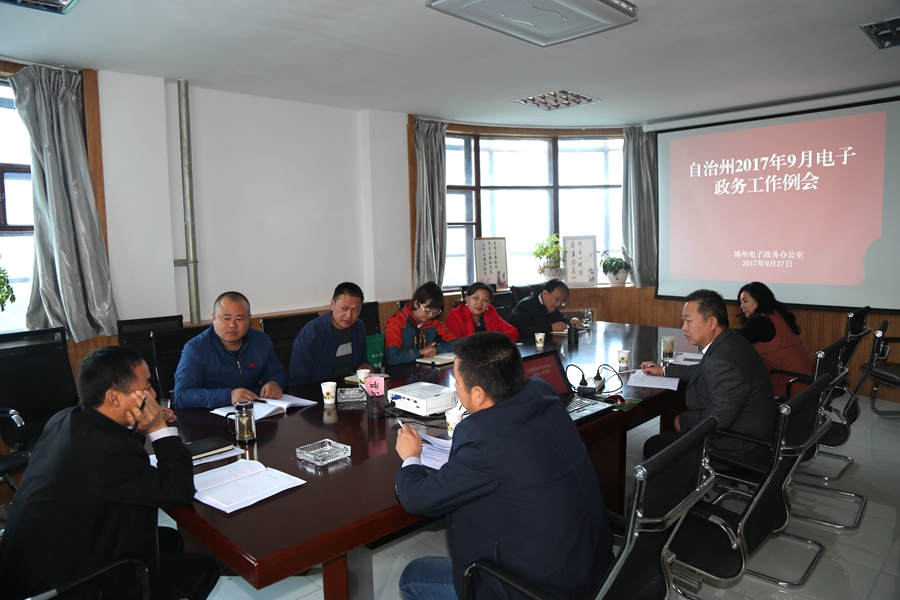 9月27日下午,州电子政务办组织各县市电子政务办召开9月份工作例会,会议由州电子政务办主任党剑亭主持。会上学习了国家、自治区、自治州有关文件精神,听取了各县市电子政务办9月份工作开展情况汇报。会议对政府网站管理、政务公开和“放管服”等重点工作进行了安排部署。