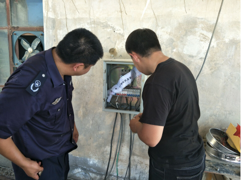 博州环保局执法人员现场查封水洗沙生产线供电设施