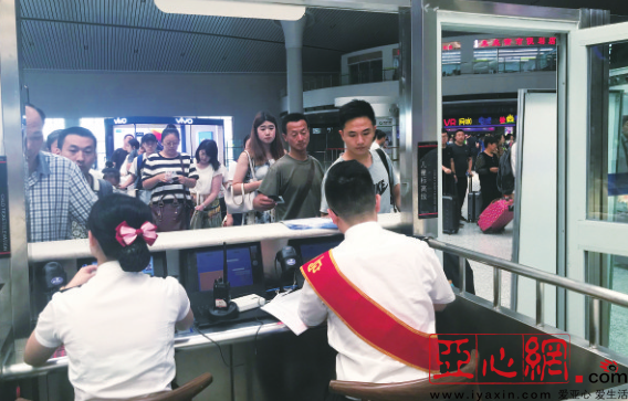 7月1日,旅客在排队通过乌鲁木齐站验票通道。