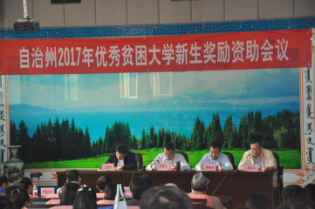 2017年8月26日,自治州2017年优秀贫困大学新生奖励资助会议在州蒙古中学一楼阶梯教室举行,出席会议的领导有:州扶贫办吐布新巴图,州民政局副调研员巴特尔同志,州财政局副调研员周效军同志,州教育局局长图格杰。今年共有77名优秀贫困大学新生获得4000元的资助,其中州、县(市)财政按3:1承担,资助总额达到30.8万元。